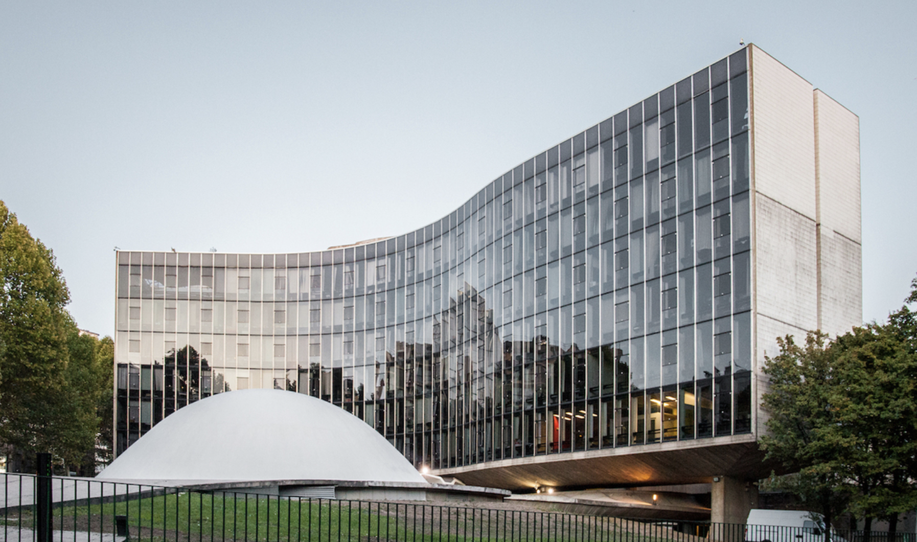 É um prédio à la Niemeyer na Place du Colonel Fabien, no 19º arrondissement. Um bloco de seis andares sobre pares de colunas, espaços públicos subterrâneos, e uma cúpula branca de concreto. Virou monumento histórico em 2007.